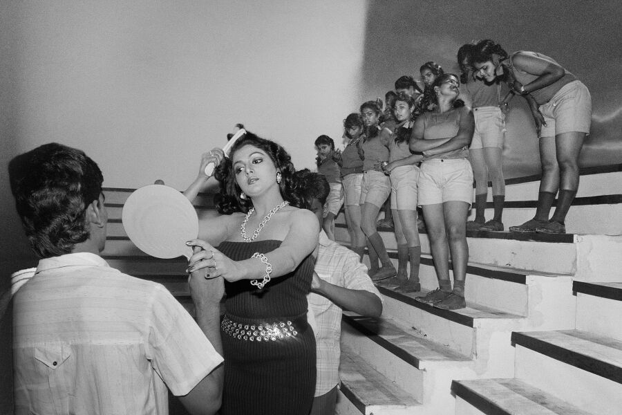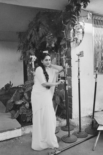 Rekha on the set of Souten ki Beti, Juhu, Bombay, 1988
