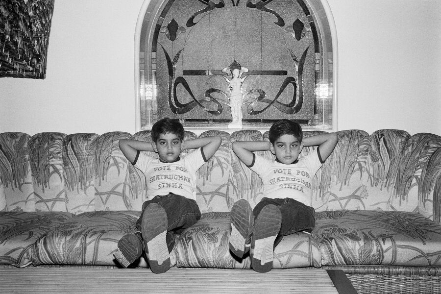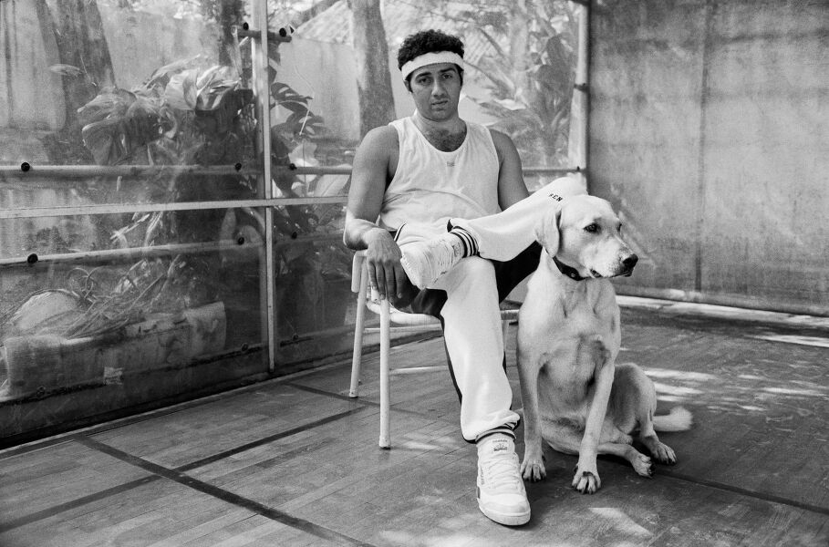 At home with Sunny Deol, Juhu, Bombay, c.1989